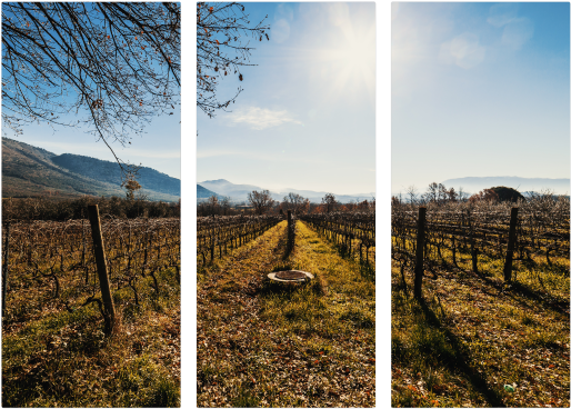 Un arcipelago di isole terrestri sul comune di Piglio, una serie di piccoli e medi appezzamenti ognuno con il suo carattere che insieme sono un avvicendarsi di coltivazione e natura. Abbiamo vite, ulivo, erbe officinali, noci ed un orto. Ogni isola dell’arcipelago (cru o contrada) è un’unità a se stante, tutt’uno con l’ambiente circostante e con il suo suolo. Ognuna di loro si palesa negli anni attraverso sfumature che ne definiscono il carattere e insieme compongono un mosaico che abbiamo contribuito a costruire. Si produce vino da quattro di loro (San Giovanni, Cercione, Collepasso, Vignali), olio da cinque (Costa Ilia, Collepasso, Fontana di Grano, San Giovanni, Mignano). In alcune isole come San Giovanni o Costa Ilia le piante sono molto vecchie e hanno raggiunto un adattamento all’ambiente ormai totale. Le erbe officinali di diversa specie completano la flora coltivata in associazione con le piante da frutto e con le erbe spontanee. Intorno ad ognuna ci sono boschi, altri campi, prati.